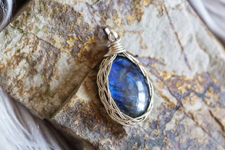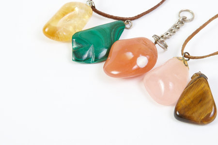 holding and using quartz crystal pendulum and using it In asking questions. pendulum quartz on stone background.