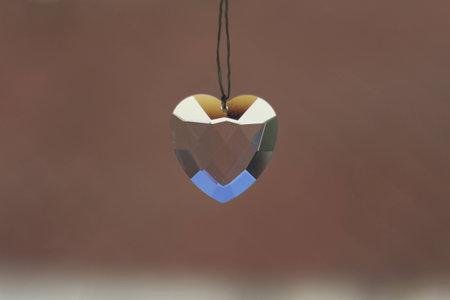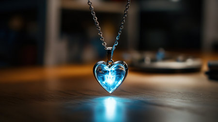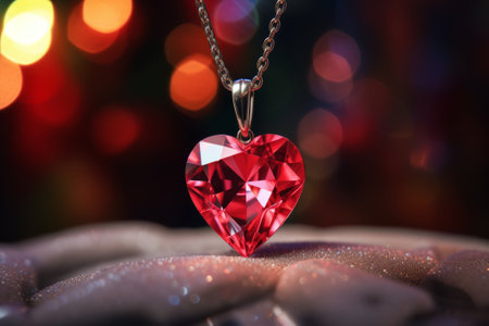 Closeup Heart pendant and silver chain on blurred golden bokeh background
