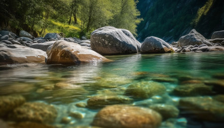 AI Generated. a river with clear water and rocks under it