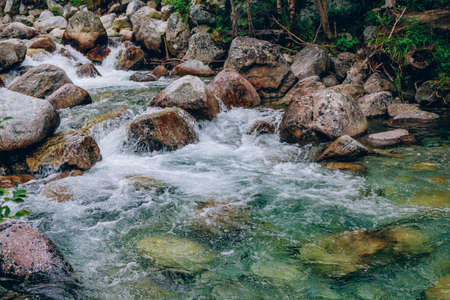 Close up photo of the turquoise mountain river, natural background