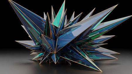 Abstract crystalline structures with sharp spiky formations and intricate geometric patterns