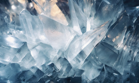 Crystal clear ice abstract texture with sharp faceted surfaces reflecting light and creating stunning modern background for luxury visuals.