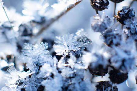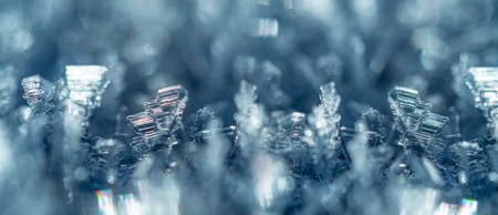 Macro detail to an ice crystals and frost patterns formed on surfaces during winter mornings