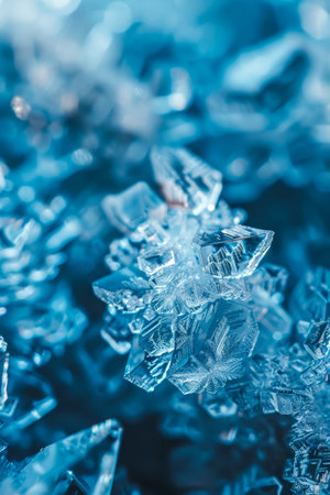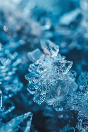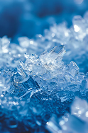 Crystal Clarity: Macro Photography of Blue Ice Crystals.