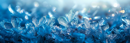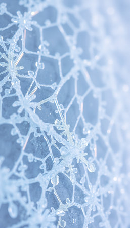 Delicate ice crystals shimmer in a serene winter scene, creating an abstract frost effect of beauty and tranquility.