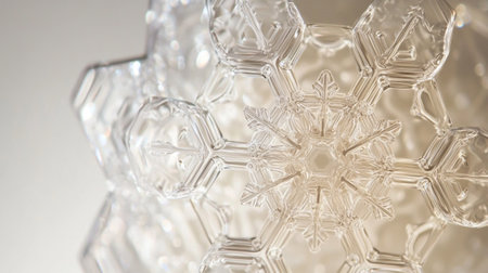 Delicate, intricate snowflake crystals with frosty details in a soft winter glow, highlighting the beauty of natural ice formations.