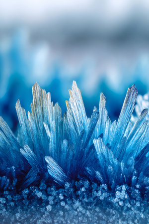 Blue ice crystals growing upwards, creating a sharp natural texture