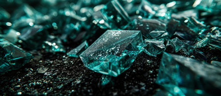 Broken diamonds on black background. Macro shot with shallow depth of field.