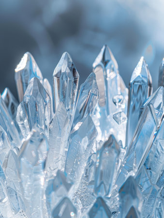 Crystalline ice surface illuminated by soft lighting with a hyper-realistic style