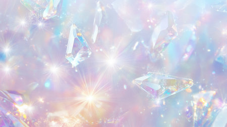 A mesmerizing display of shimmering crystals scattered across a soft pastel background, creating a magical atmosphere filled with light and color, perfect for adding a touch of elegance to any design