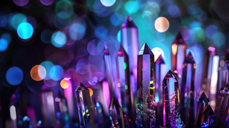 A stunning close-up of colorful crystals with an enchanting bokeh background, perfect for artistic projects, designs, or decorative use that evoke beauty and mystery.