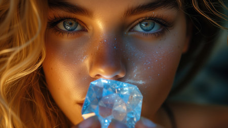 portrait of a pretty girl with a large diamond in her hand