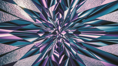 Modern geometric digital artwork evoking a cool, ethereal mood through precise angular facets and dynamic light refraction techniques. Perfect for tech interface elements, winter campaign visuals, luxury branding materials, or app backgrounds appealing to UI designers and digital artists. Its clean, scalable composition ensures seamless integration across print and w... AI-generated illustration.