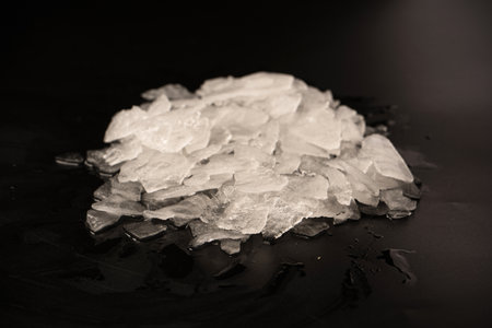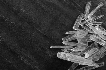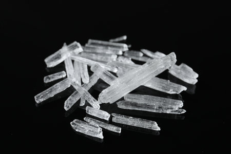 Menthol crystals on black background, closeup view
