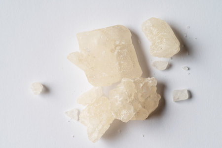 crystal mephedrone designer drugs, bath salt on white background.2024 2025