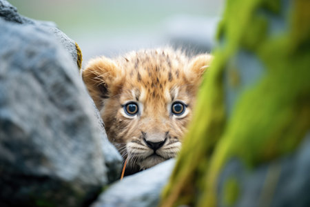 The lion cub's exploration of its surroundings, capturing the essence of inquisitiveness