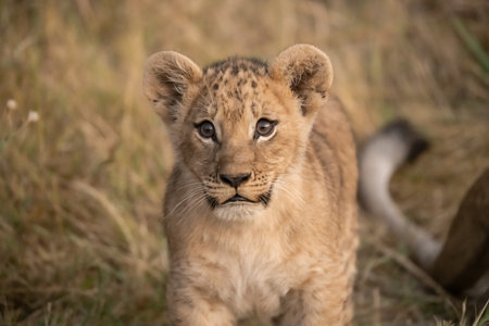 Lion cub looking at camera in Serengeti National Park, Tanzania