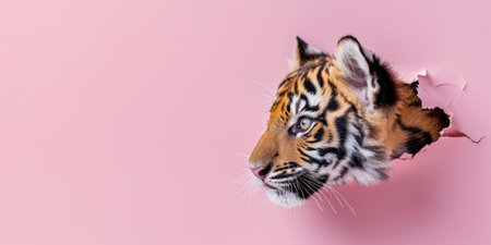 Close up view picture of the hollow pink hole on the the wall that show the tiger stay inside the wall that has been made from some material yet still can be break to look through other side. AIGX03.