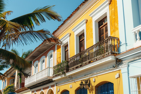 Tourist destination colorful city candy buildings South America architecture old houses palms art home exterior facade town streets historic exploration warm tropical county tourism aesthetic