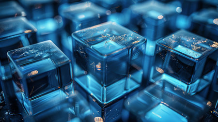 This striking image features an arrangement of geometric cubes in varying shades of blue on a smooth surface, perfect for modern design projects.
