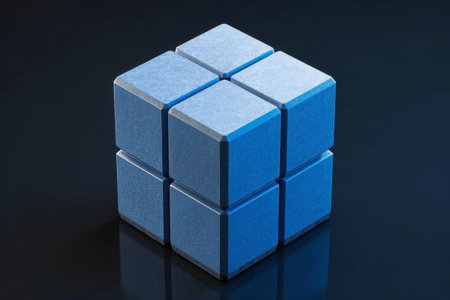 A textured green cube, divided into equal smaller cubes, presented on a dark grey background