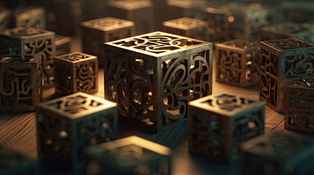 AI Generated. A group of white cubes sitting on top of a table