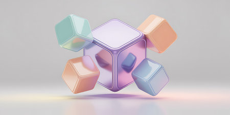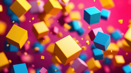 This captivating image features colorful 3D cubes floating against a vibrant abstract background, creating a dynamic visual experience perfect for modern designs.