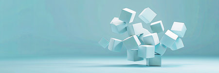 Floating Cube Block Cluster Against a Clean Blue Background