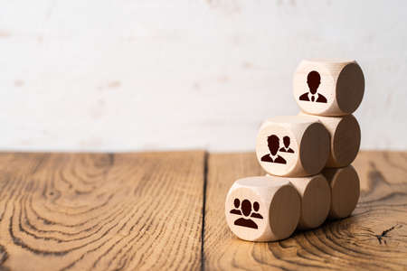 white wooden cube block and a person icon that links a network of connections for the social networks organizational structure and the concept of teamwork.