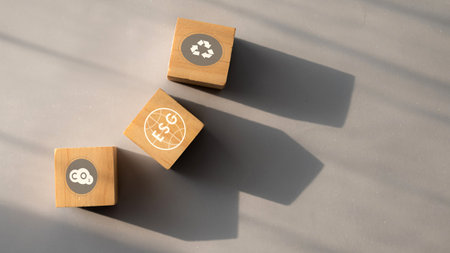 Environmental protection, renewable, sustainable energy sources. Blocks with symbols of renewable energy