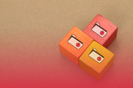 wooden cube arrangement with download icons. the concept of downloading through websites or cloud computing