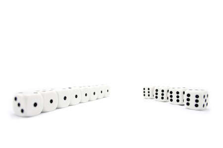 Many dice on white background