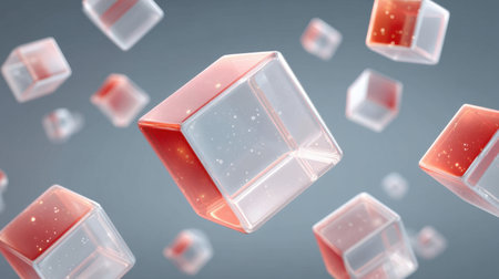 Stunning abstract 3D render showcasing floating iridescent cubes with a soft glow on a gradient background, perfect for modern design, digital art, and creative projects.