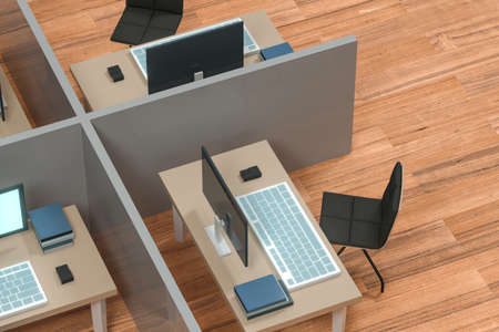 Top view modern room office scene 3D rendering business wallpaper backgrounds