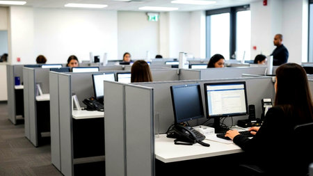 call center workspace with cubicles, created with generative ai