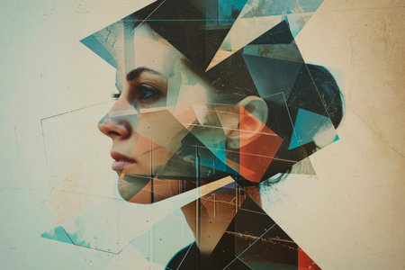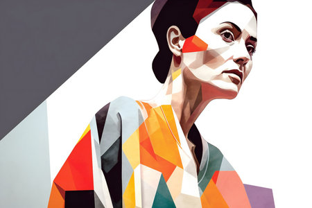 cubist portrait of woman, with her face and body fragmented into geometric shapes, created with generative ai