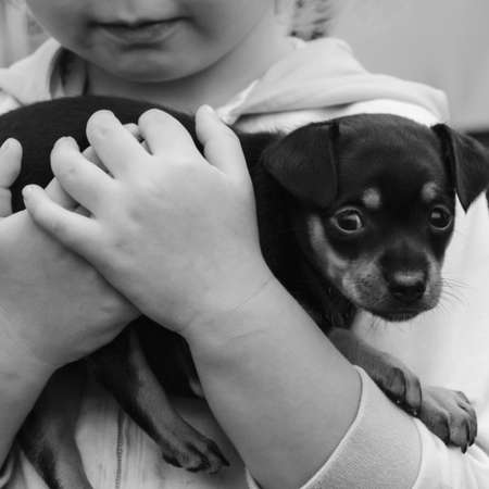 Small dogs in the hands of a lady. Close-up. Portrait. Trust, friendship between a person and an animal. Charming pets. Mini pinscher.
