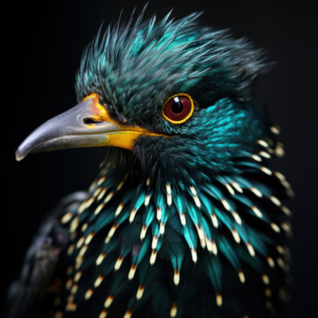 Intimate view of a Turdus merula's head, showcasing its sleek feathers and alert expression