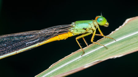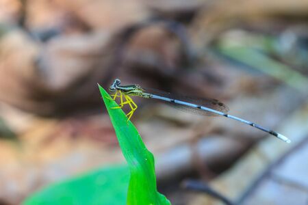 Zygoptera insect on leaf garden Zygoptera garden dragonfly green leaves plant to sit dragonfly