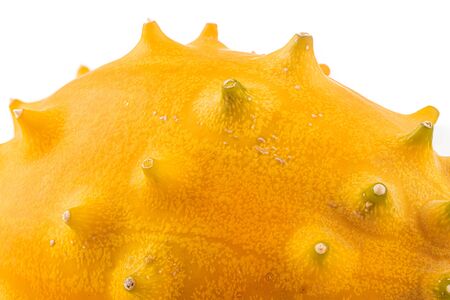 Kiwano or horned melon isolated on white background with copy space for your text. Cucumber theme.
