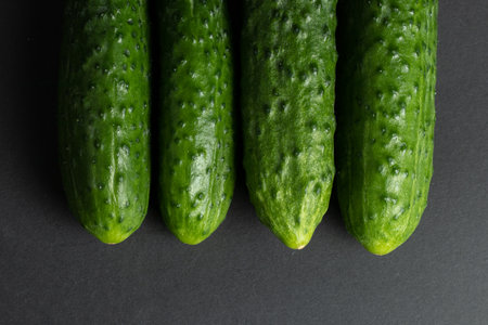 Green, juicy, fresh cucumbers, on a bright, even background.