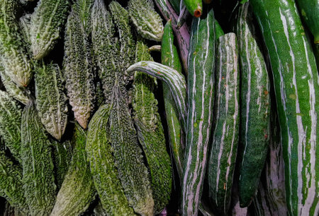 Bitter gourd or bitter melon background, Asian food ingredients and herbal medicine
