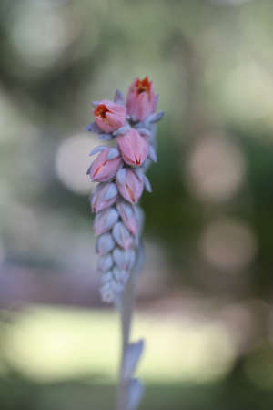 Mother of pearl ghost plant succulent outdoor in sunny backyard shot at shallow depth of field