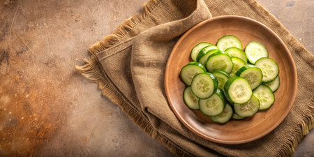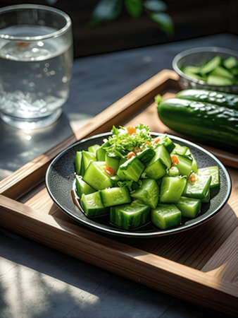 chilled cucumber slices arranged on a plate, created with generative ai