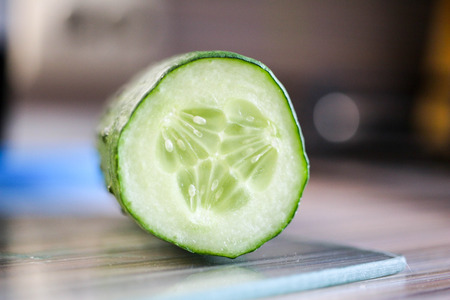 Pieces of green cucumber circles macro photo, vegetables for a healthy diet