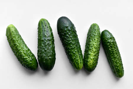 Green fresh cucumbers on a white background. Healthy organic food concept. green natural background.