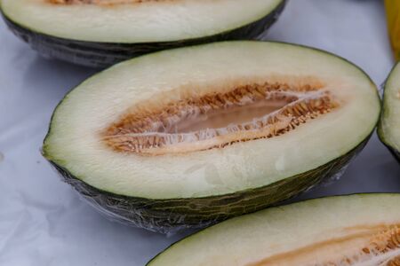Cantaloupe yellow melon fruit in the kitchen