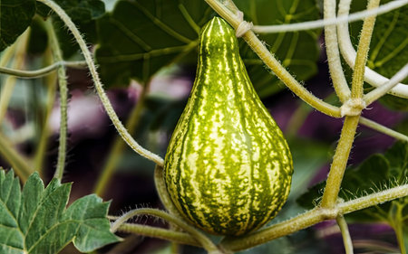 .Fresh green pumpkin from the tree