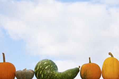 Lined up Pumpkins on the sky background