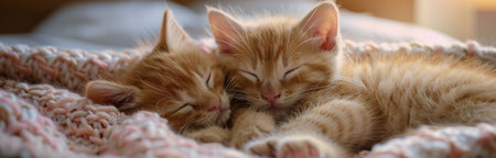 Two adorable orange kittens peacefully sleeping on a cozy blanket, showcasing their soft fur and innocence. Perfect for animal lovers and pet enthusiasts.